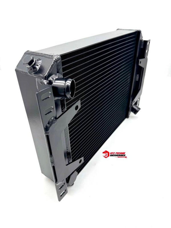 Der Kühler ist schwarz beschichtet um den Emissionsgrad (Wärmeabstrahlung) zu erhöhen und den Kühler gegen Umwelteinflüsse zu schützen.